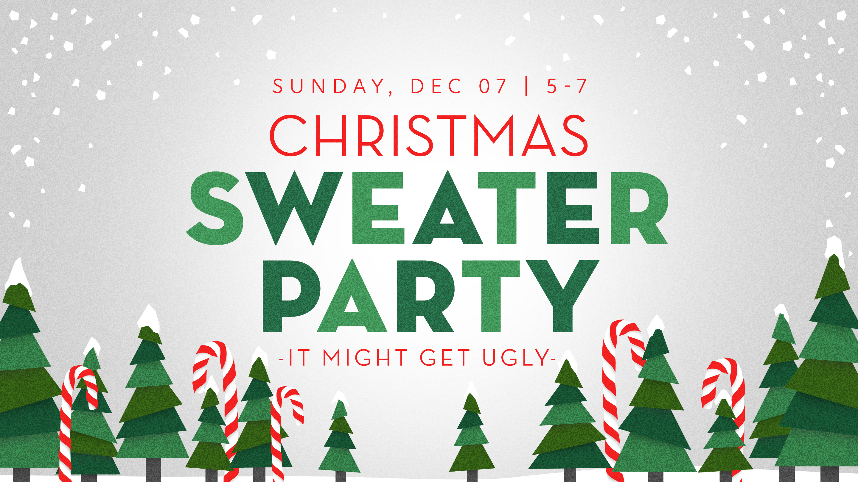 A Christmas Sweater PartySunday, December 07 | 5-7pmInvite your friends and family for fun Christmas games, ugly sweater contest, photo booth, live music, Dinner provided and fellowship.May all your sweaters be ugly or bright!Nursery available (4 and under)