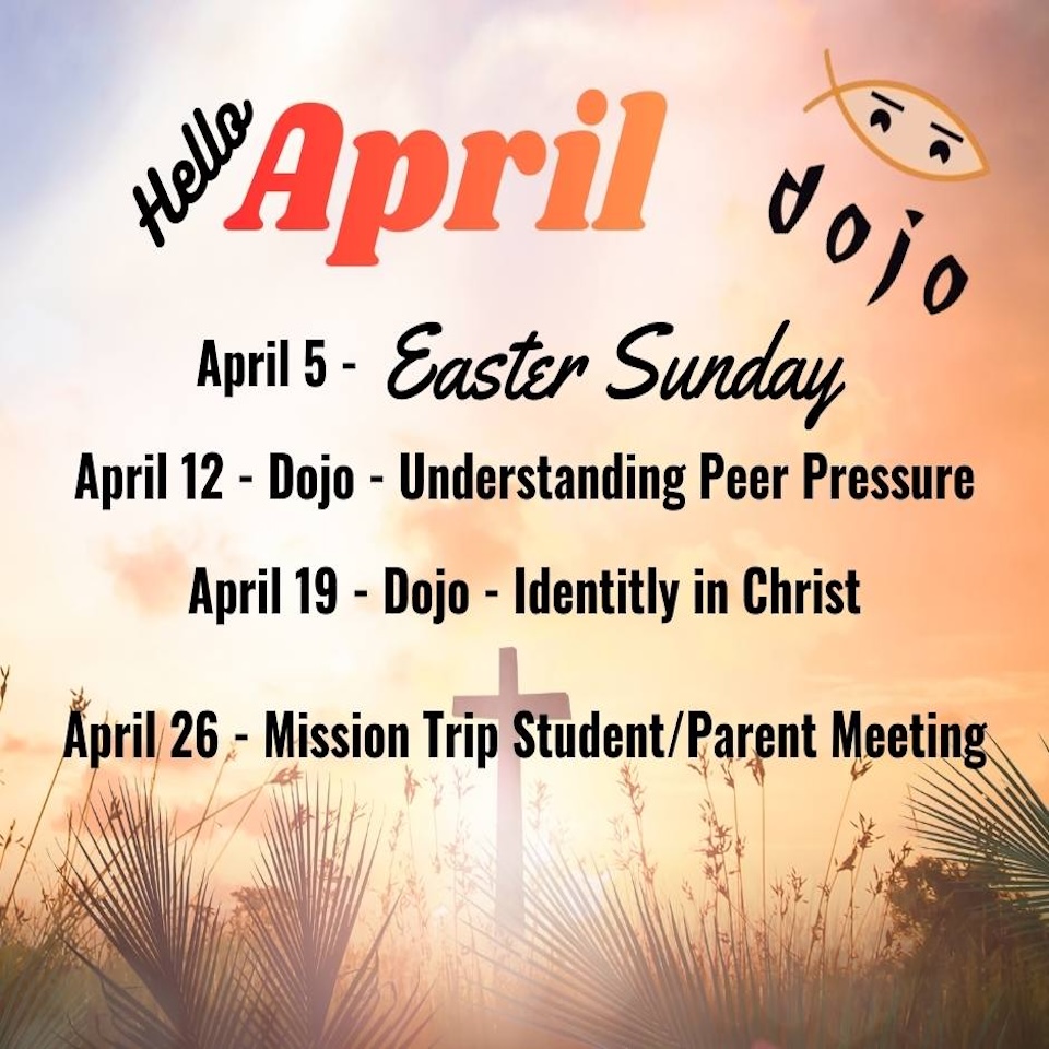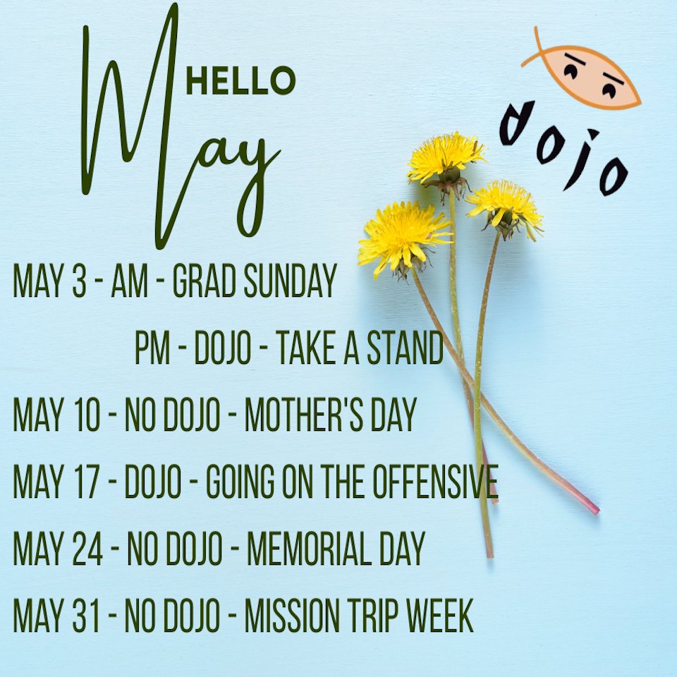 Dojo meets in the Youth Buildingon Sunday evenings from 6-8Students are invited to hang out with old and new friends while enjoying dinner and a fun games.After dinner and games, we dive deep and explore what it means to follow Jesus in our everyday lives.